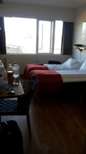 Üses Zimmer erreichte me vom grosse Huus über dä Gang, wiu es si zwöi Gebäud wo Zimmer vom Hotäu hei.