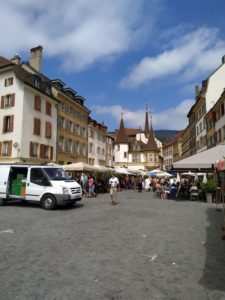 E so simer zNeuchâtel glandet. SZmittag hei mer im Zug gässe:
